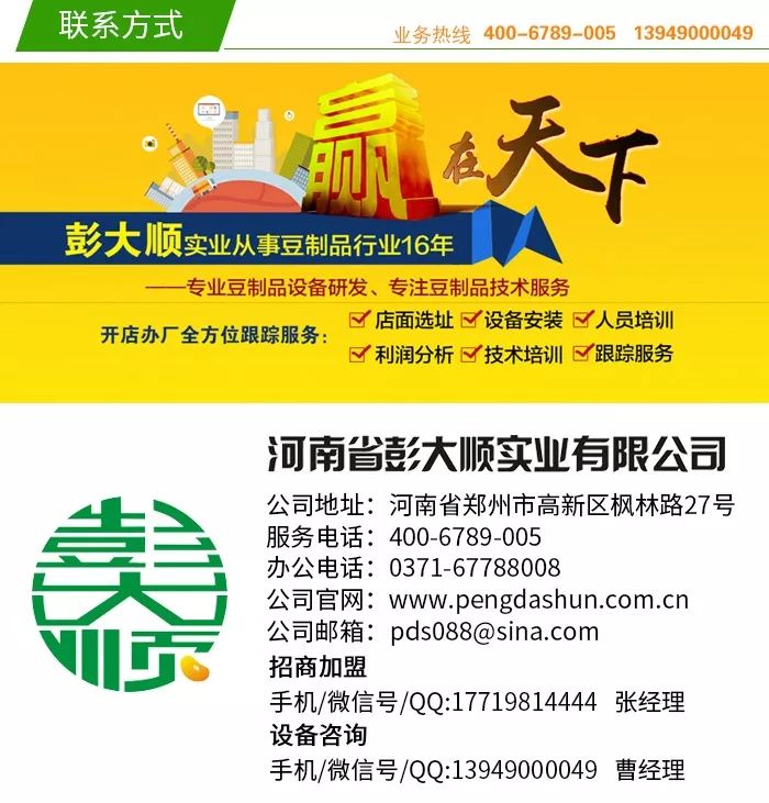 彭大順豆腐坊加盟公司總部為客戶提供店面選址、裝修設(shè)計、開業(yè)手續(xù)辦理、設(shè)備定購、技術(shù)培訓(xùn)、開業(yè)儀式、分析市場、店鋪運(yùn)營策劃等全方位的技術(shù)性服務(wù)和一站式幫扶服務(wù),爭取讓每一位加盟者都能輕松開店獲取盈利。蘇先生之前沒有做過豆制品生意,選擇加盟項目最合適不過。蘇先生在來之前就已經(jīng)決定加盟彭大順項目的,他已經(jīng)在農(nóng)貿(mào)市場租下了一間合適的店鋪,準(zhǔn)備做批發(fā)加零售形式經(jīng)營。